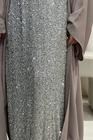 Ensemble Cape ANGELINA et sous abaya sequin BRUN NUDE
