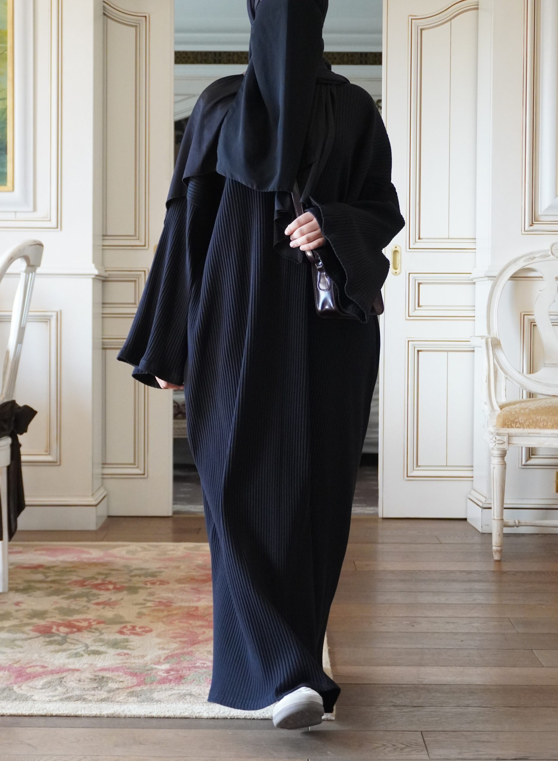 Pour les personnes qui se situent entre deux, cela peut arriver. Je vous suggère d’opter pour un modèle plus grand et de chercher une retouche en ville ou chez un couturier pour obtenir une coupe parfaitement adaptée à vos mensurations. Il est important de demander constamment au couturier de réaliser un ourlet légèrement arrondi sur les côtés pour vos abayas.