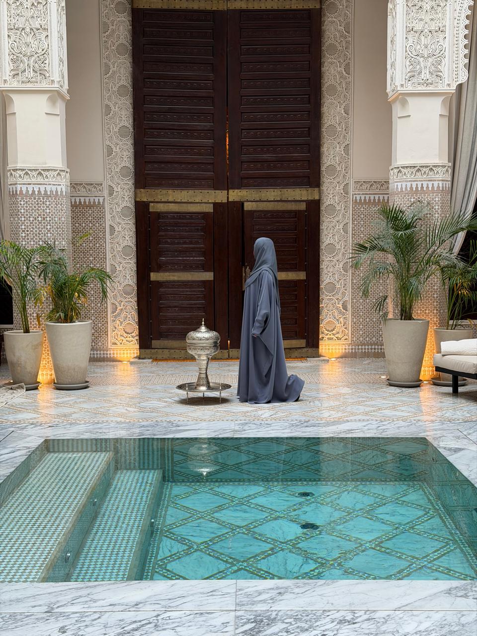 Cette création revient avec un détail délicat et fonctionnel : un passe-doigt discret, pensé pour maintenir la abaya avec élégance tout en apportant une touche moderne. Un petit plus qui change tout, tant par le confort que par l’allure.