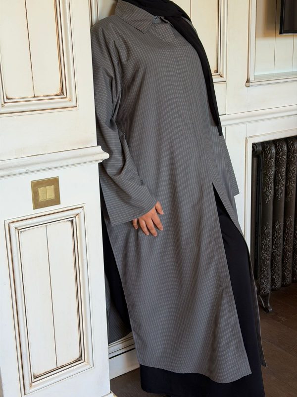 une chemise mi ouverte à l’avant et ouverte par  des fentes sur les côtés